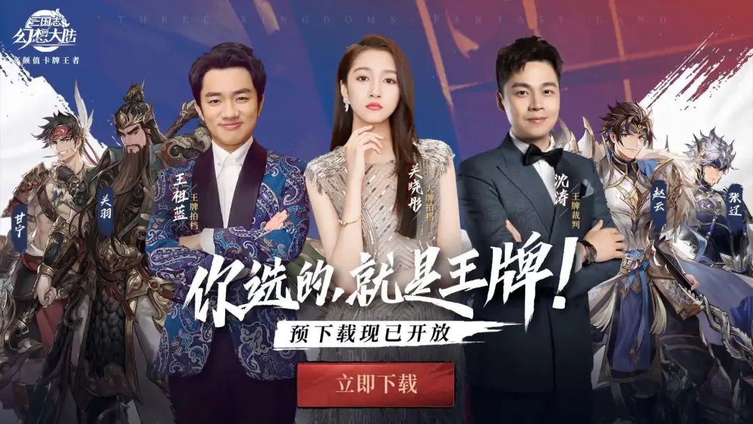 不仅在《三国志》IP的游戏中,灵犀互娱的代言人策略也同样出现在其发行的其他产品中,他们自研的《三国志幻想大陆》就曾邀请以“颜值”为关键词的关晓彤,和以“逆袭”为关键词的王祖蓝,凸显卡牌游戏的不逼氪和卡面优秀等基础属性。