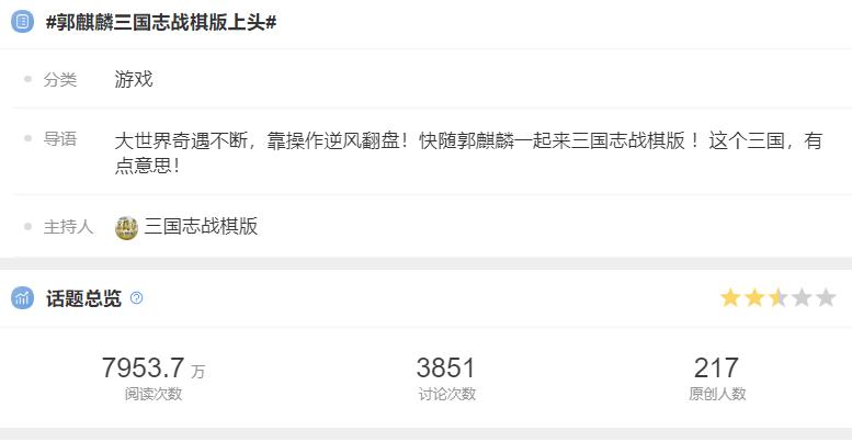 经过一天时间的发酵,《三棋》与郭麒麟的相关话题在微博上迅速达到了近8000万的阅读量,相关品牌片视频在B站的播放量也突破百万,与过往《三国志》IP在代言人策略上的成绩不相上下。