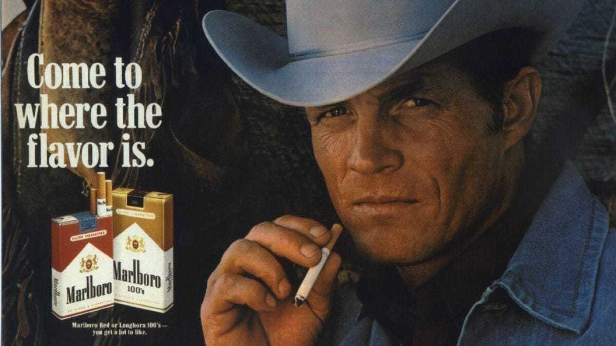 广告的目的是让你产生一定的情感。最好的品牌广告可以应用于自我实现,即我们可以用哪种方式来认识自己。之前,我提到过香烟品牌万宝路(Marlboro)塑造出一个名叫“The Marlboro Man”的西部牛仔,此举让该品牌销量在宣传计划推出 8 个月内上涨了 5000%,也加强了男性化形象,成功让男性也选择使用滤嘴烟(在吸烟导致肺癌开始获得认同的 1950 年代,滤嘴烟被错误地视作较安全的烟,许多男性因此担心吸滤嘴烟会被视作娘娘腔)。男性渴望成为坚毅、阳刚的万宝路西部牛仔。