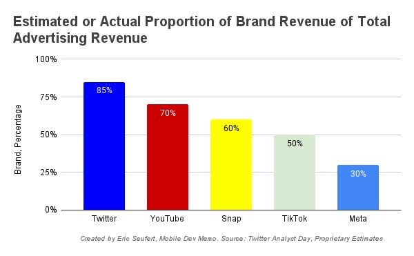但是,当我认真考虑如何将自我实现应用于商业场景时,我第一时间联想到的却是广告。具体来说,在苹果推出应用跟踪透明(ATT)框架,限制应用程序读取用户设备的广告标识符后(苹果宣称此举是保护用户隐私),直接反应式广告就开始走下坡路了。但在我看来,品牌广告似乎有望卷土重来。事实上,品牌广告收入占主流平台总收入的比例已经达到了 30% 至 85%。