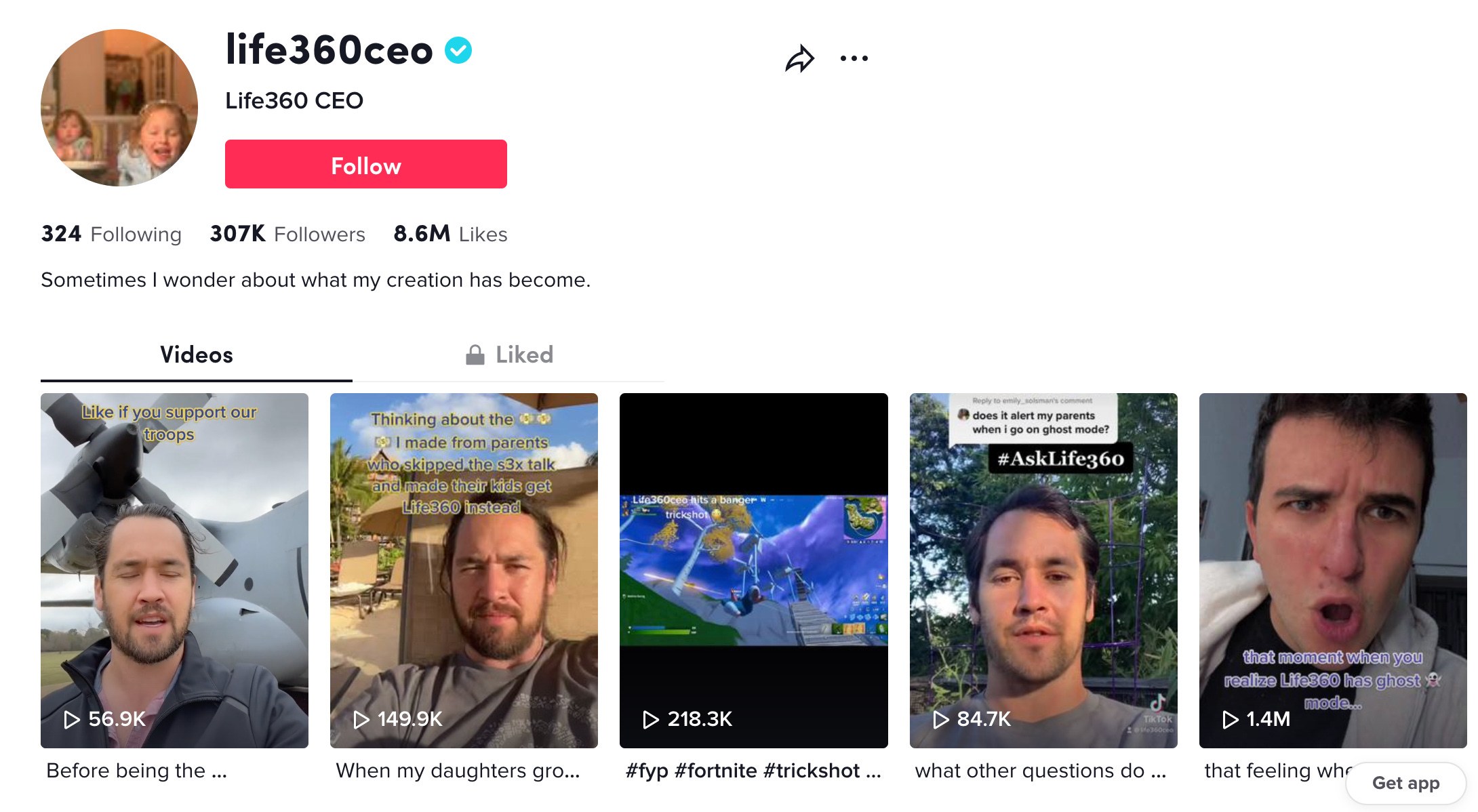 对此,Life360 首席执行官克里斯·赫尔斯(Chris Hulls)的回应方式非常有意思。他在 TikTok 上开设了一个账号,发布视频来调侃自己和他的公司,然后与批评其产品的创作者发展成为了朋友。他雇佣这些朋友来为 Life360 提供咨询服务,帮助公司开发更适合青少年的功能。
