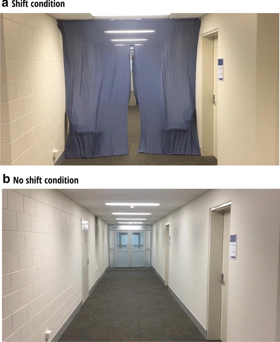 实验三则让参与者坐在房间里,用30s的时间记住16张蝴蝶种类的照片,然后再以第一人称视角观看一个人穿过有层层门帘的走廊的视频。和实验二一样,参与者还需对给定的数字进行倒数。实验四与实验三的过程基本相同,参与者会通过现实中的这个走廊,然后在实验结束后对16张经过打乱的蝴蝶照片进行重新排序。