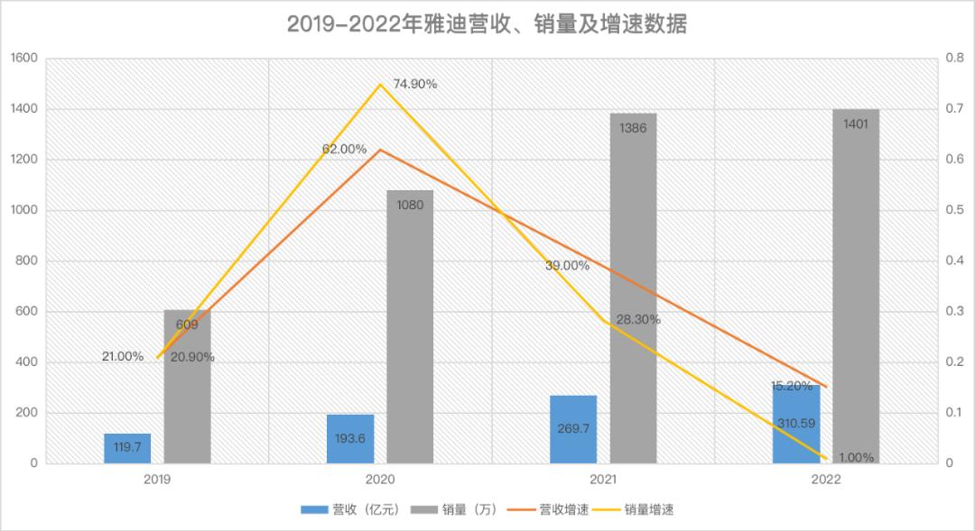 2019年-2022年,雅迪的营收和销量增速高开低走。但如果把视角放宽,就会发现龙头的烦恼并非行业的烦恼。2022年雅迪的销量增速只有1%,而爱玛有26.05%,九号甚至高达95%。