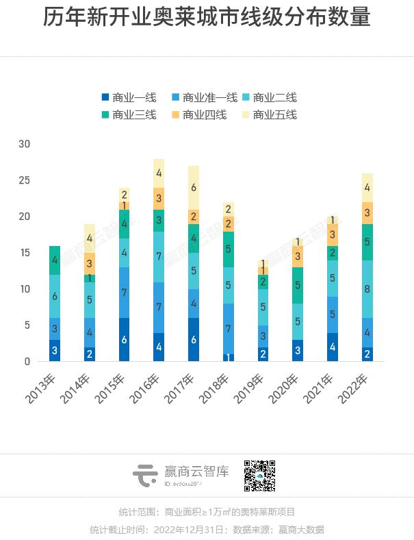 纵观奥莱历年增量,2022年为历史之最,新开项目26个、体量294万㎡,奥莱之火由此可见。