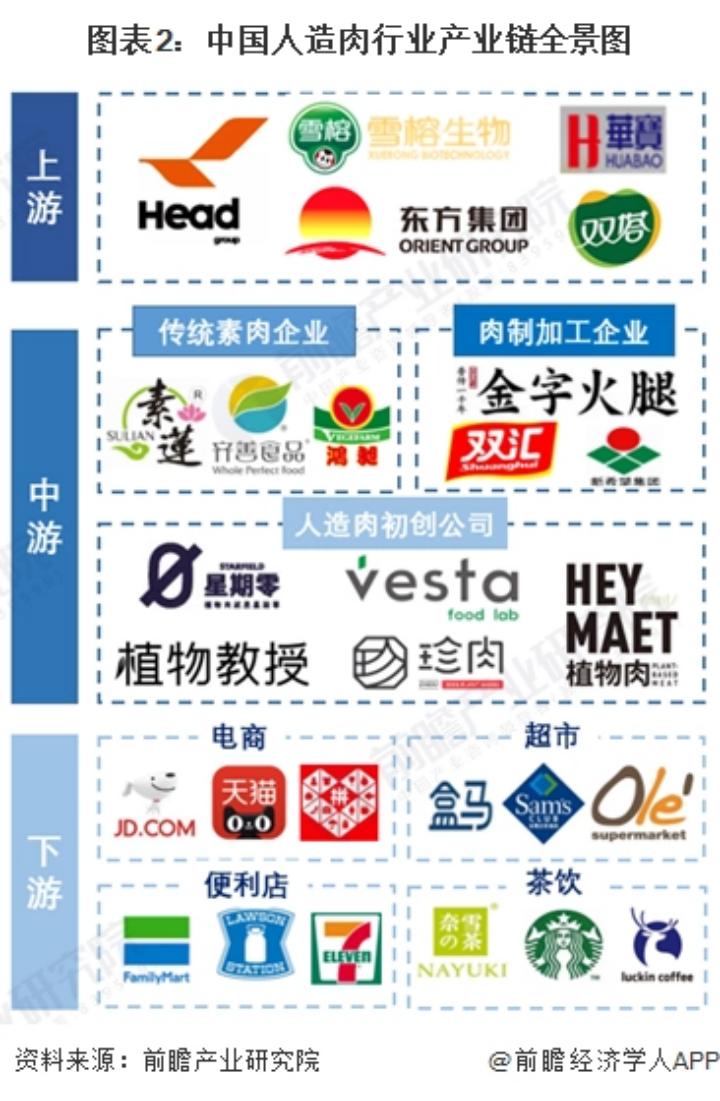 上游企业,以雪榕生物、双塔食品为代表。产业中游则有金字火腿、双汇等传统肉食企业入局。星期零、植物教授、未食达等新锐品牌也乘着热度获得了融资。在下游渠道端,除天猫、京东等电商外,盒马、山姆超市、罗森等线下商超,也有植物肉产品售卖。