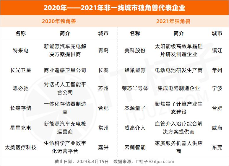 而在 2023 年一季度中国共诞生的 12 家独角兽中,有 5 家独角兽出身非一线城市。中润光能来自江苏徐州、华晟新能源来自安徽宣城、宇泽半导体来自云南楚雄、正泰新能来自浙江嘉兴、博锐生物来自浙江台州。