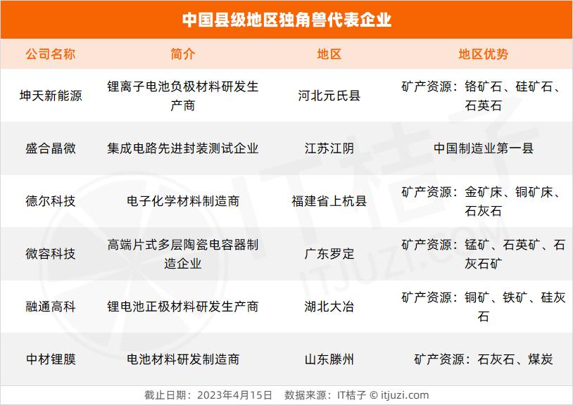 拥有独角兽企业的县城,多数在资源上有优势。河北元氏县,铬矿石、硅矿石、石英石等资源丰富;广东罗定,拥有丰富发锰矿、石英矿、石灰石矿资源;湖北大冶,铜矿、铁矿、硅灰石储量规模大等。
