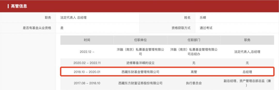 值得注意的是,沣融(南京)私募基金的实控人、法定代表人、总经理乐嵘此前曾是基金公司的高管。