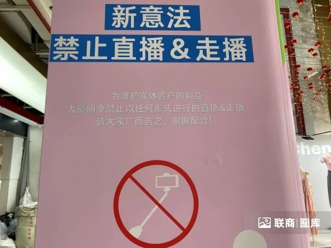 《联商网》走访发现,不少店铺门口贴上了“禁止拍照”、“已申请版权,设计保护”等警告标语,从中可见,版权保护是直播、走播被禁的又一原因。