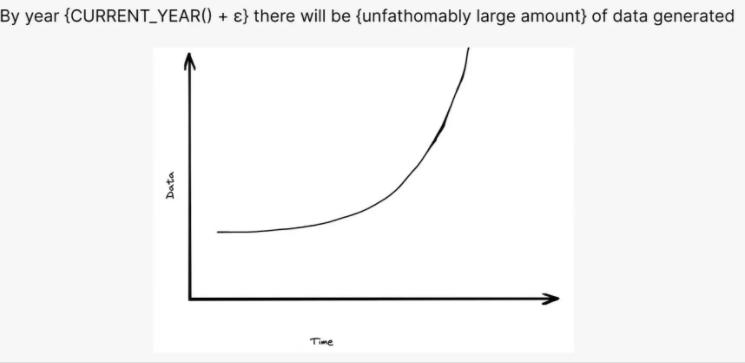 从“大数据即将到来”的图表中可以看出,很快每个人都会被他们的数据淹没。十年过去了,这个现象还没有出现。我们可以通过几种方式验证这一点: 查看数据 (定量地)、询问人们是否有过大数据的感知经历 (定性地)、从基本原理 (归纳地) 思考分析。