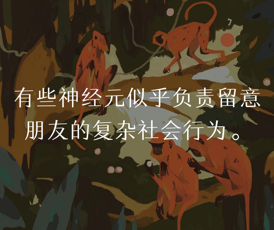 我们对此还知之甚少。的确,特定神经元在两只蝙蝠“朋友”呼叫彼此时会整装待发、协同工作,还有特定的神经元会在两只猴子分享食物时点亮。然而我们还不能确定这些神经元此刻究竟是在展开同步、识别、抑或是在对双方传递的信息进行编码。我们也不知道社会信息能多大程度上长期保留,还是仅仅存在于社会活动期间。
