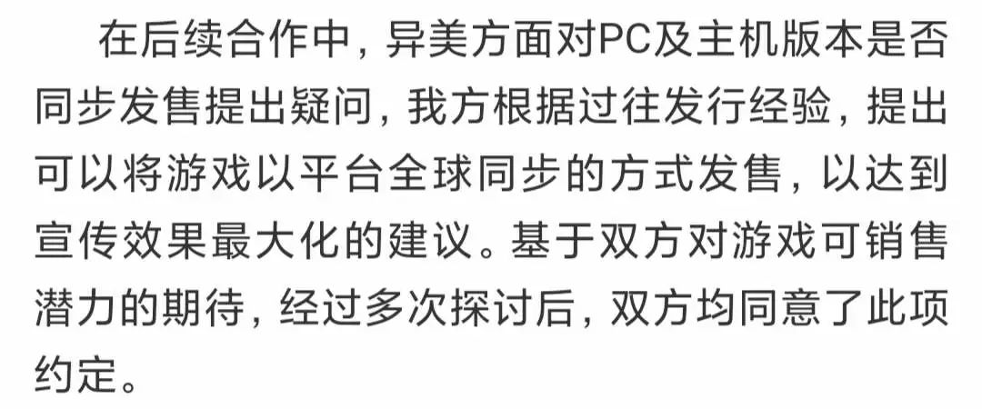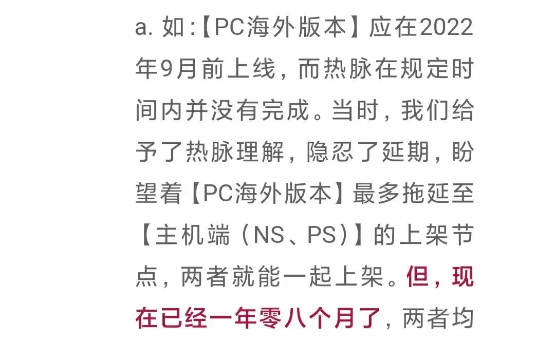此外,热脉强调,双方后续协商同意将PC版本上架时间延后,以求与主机版同步发售。