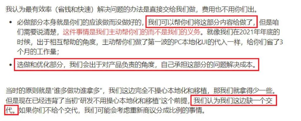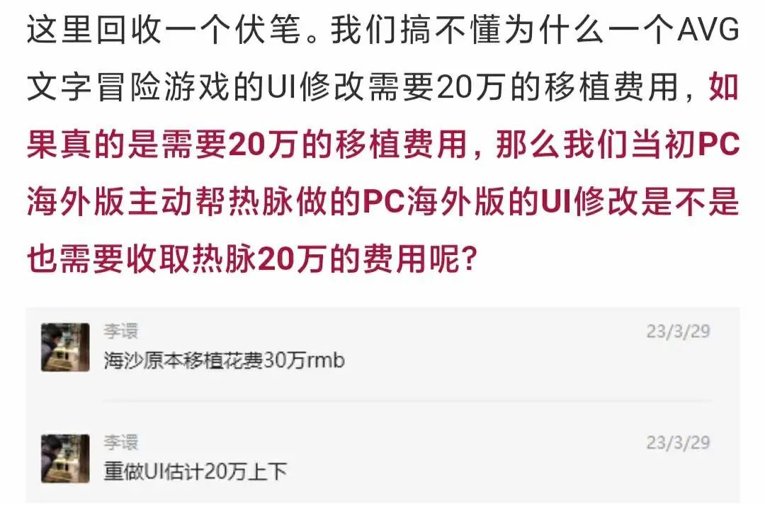 热脉表示,这相当于要重做UI,属于额外业务内容,需要加收20万元。异美认为这样的要价并不合理。此外,《海沙风云》海外PC版的UI替换工作是异美完成的,异美认为这或许也本应是热脉负责的工作。