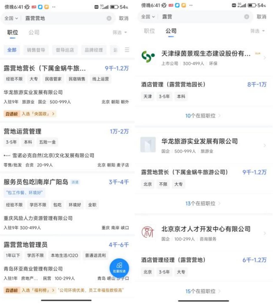 二是强化营地专业队伍建设。露营近年来兴起,在疫情期间壮大,但营地运营专业化人才队伍严重缺乏。当前,网络上对露营体验负面评价中许多都与服务及专业性有关。从智联招聘、中华英才网等招聘平台看,露营相关人才主要围绕露营主理人、营地活动策划、营地品牌推广、户外领队、拓展教练、营地工程管理等人才招聘信息明显增多。薪资方面,以营地主理人为例,收入约为1万-3万元/月。