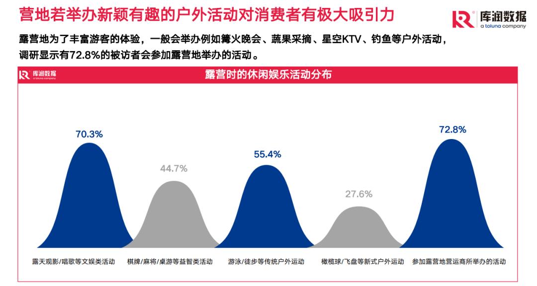 库润数据报告显示,如果营地举办新颖有趣的户外特色活动,72.8%的被访者会考虑参加。