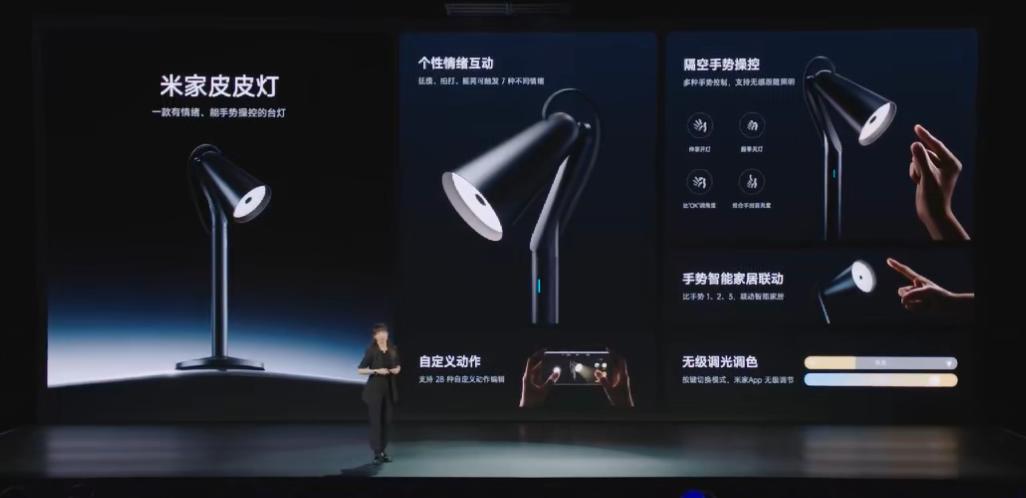 这是一款「工程师」的小玩具,一款很皮的灯,发布会现场展示了它通过手势调光开关,抚摸拍打触发不同情绪反馈、联动智能家居的体验,看起来很有趣,现已上架小米众筹。