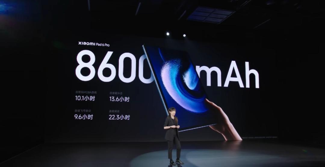 续航方面,Xiaomi Pad 6 Pro 搭载了一块 8600mAh 电池,连续飞书会议时长可达 9.6 小时,首发深度休眠模式,让平板最长休眠超过 47 天。