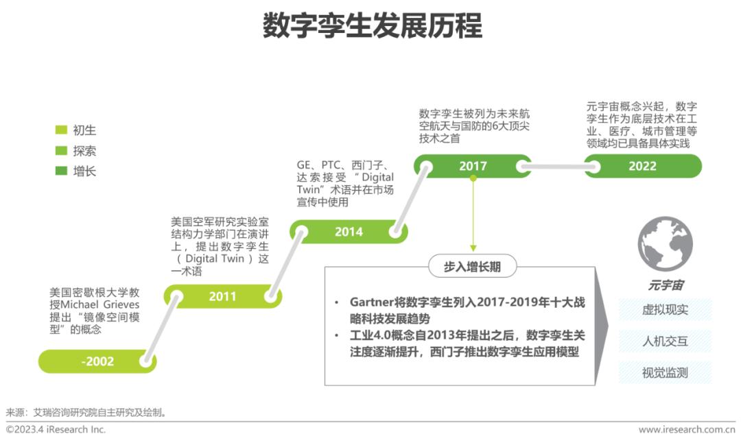 数字孪生概念起源于美国,最初是为了预防损失极高的航天意外事件、空军战斗机维护等问题的发生,随后美国通用电气公司发现数字孪生技术对生产制造的价值,将之推广到工业生产领域,西门子、达索等老牌制造企业纷纷入局,数字孪生技术从美国向欧洲扩散。随着人工智能、物联网、虚拟现实等技术的持续发展以及元宇宙概念的兴起,数字孪生概念进一步完善,适用范围不断拓宽,在工业和城市领域均具备更大的想象空间。