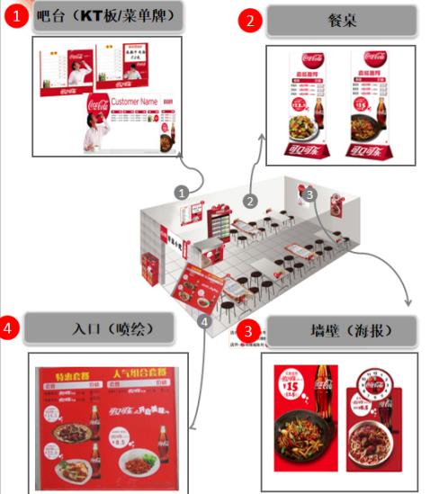 餐饮店作为半封闭渠道,消费者在店内就餐,只要产生饮用需求,很容易成交。这样的场景下,通过吧台陈列、店内海报、促销吊旗、桌卡摆台等对产品进行广宣,会非常见效。