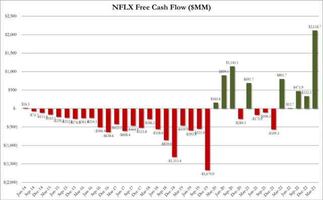现金流方面,奈飞披露,一季度营业活动产生的净现金为22亿美元,约为一年前9亿美元的2.4倍。一季度的自由现金流合计21亿美元,约为一年前8亿美元的2.6倍。
