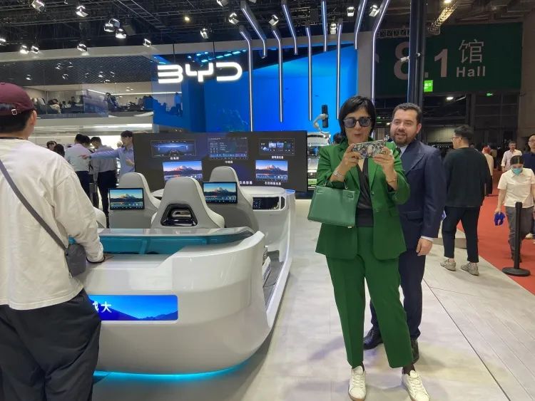 在上海车展上还会发现,忙着拍视频说车的,还有海外媒体的身影,也不乏国际友人跑去比亚迪展台打卡。