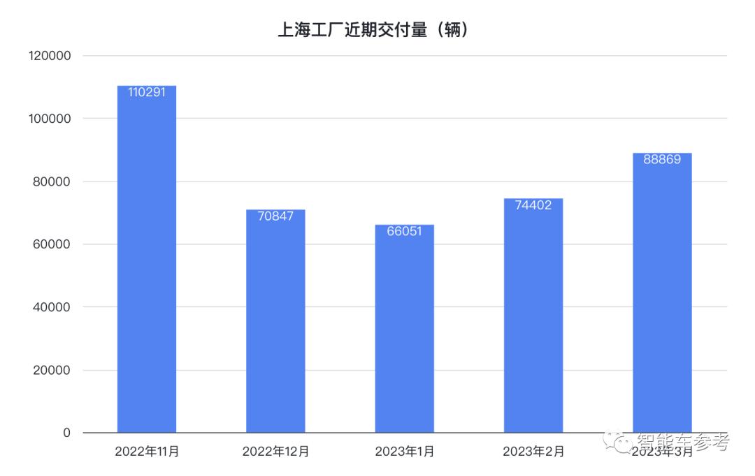从近几个月的数据来看,虽然因为年初上海工厂放假导致1月交付量下滑,但今年上海工厂交付量持续增长,前三个月交付量均超过6.5万辆。