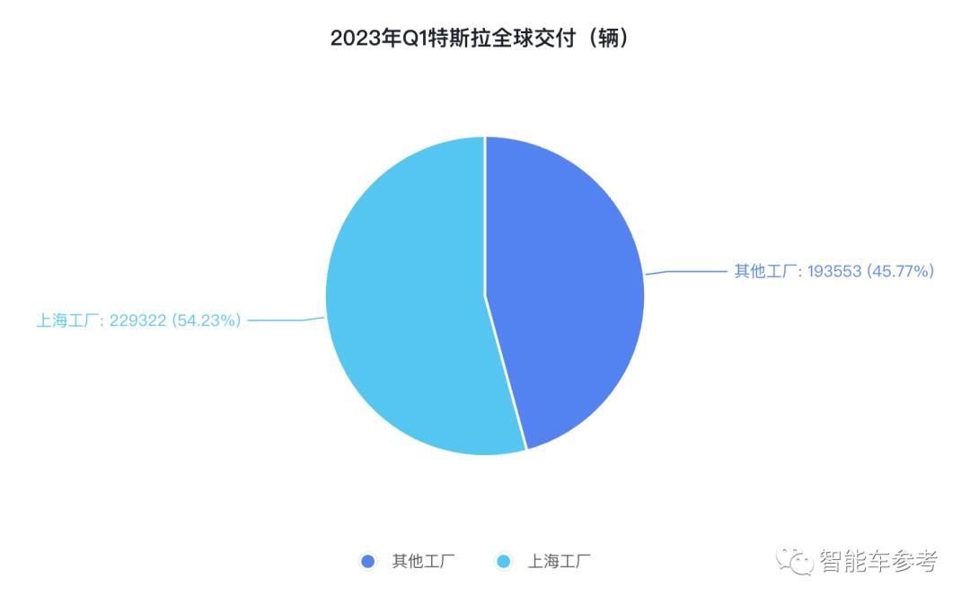 今年第一季度上海工厂交付量超22.93万辆,占全球交付量比重54.23%。