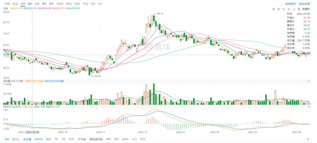 达达的股价表现就没这么优秀,自2020年11月达到历史高位后,此后达达股价不断下降,甚至在2022年全年的股价一直低于此前的发行价。