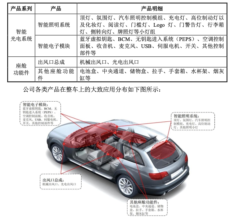 近日,一家宁波的车企供应商——宁波福尔达就提交了招股书,其主要生产智能光电系统和座舱功能件。其中智能光电系统包括智能照明系统和智能电子模块;座舱功能件包括出风口总成和其他座舱功能件。