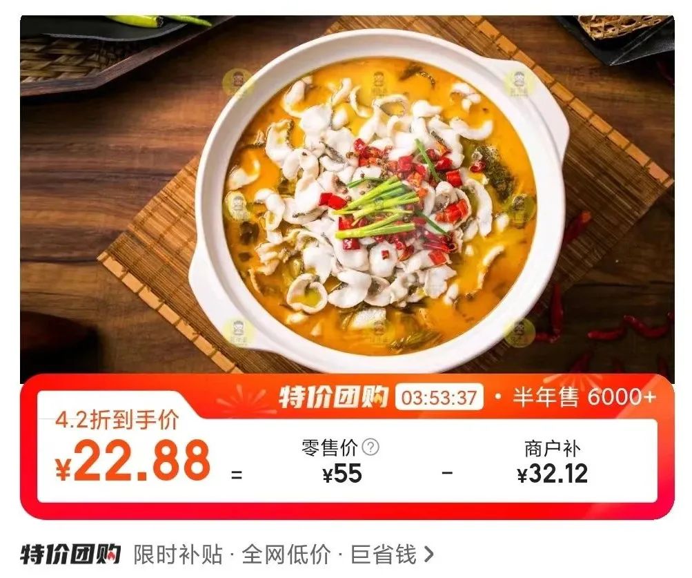 比如肯德基的十翅团购套餐,原价39.9元,特价只优惠了1.02元;比如某餐饮店的酸菜鱼套餐,原价55元,特价优惠了4.2折。