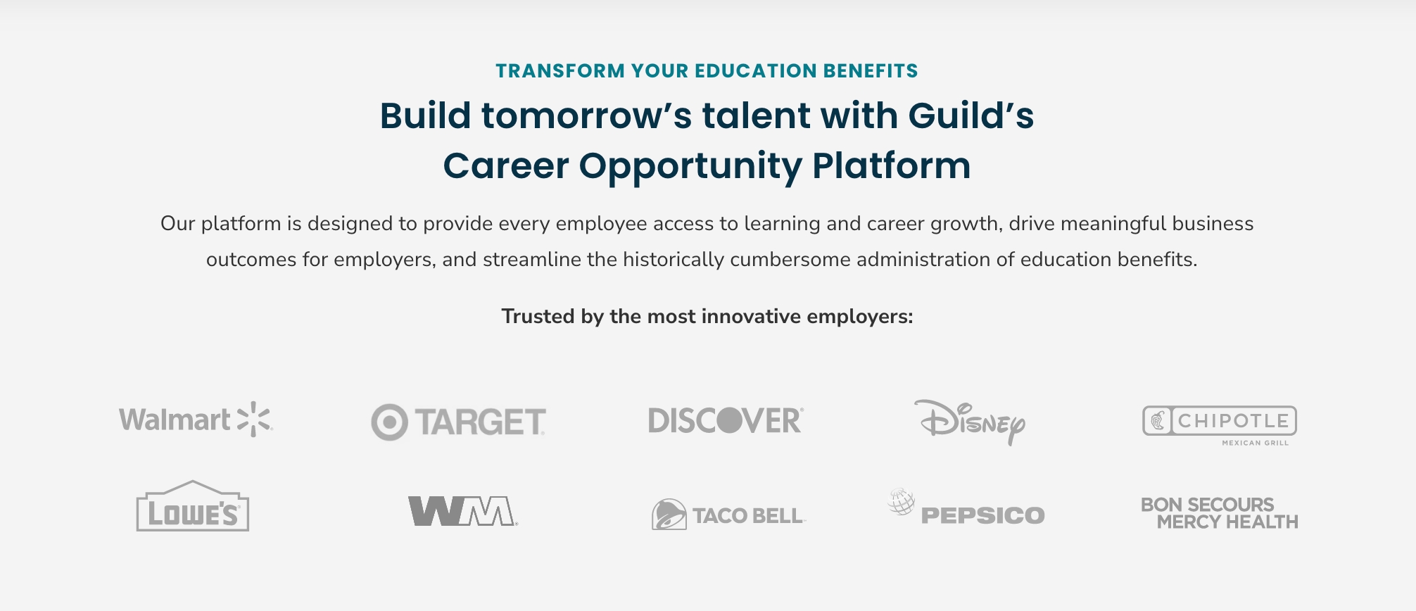 Guild 把提供教育作为一种福利;雇主也会受到激励,因为与 Guild 合作可以降低员工流失率