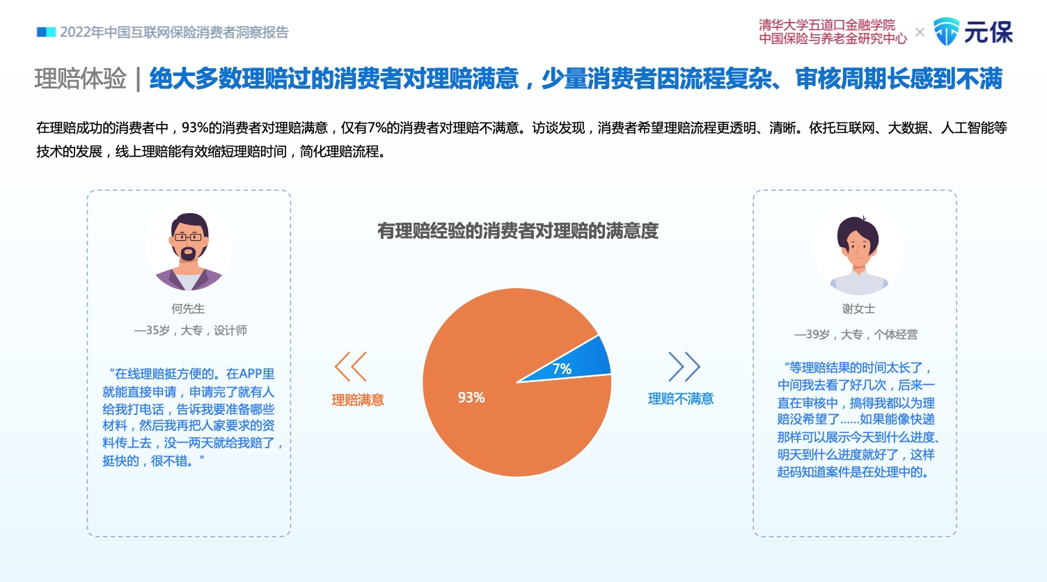 《报告》显示,绝大多数理赔过的消费者对理赔满意,少量消费者因流程复杂、审核周期长感到不满。消费者希望理赔流程更透明、清晰。依托互联网、大数据、人工智能等技术的发展,线上理赔能有效缩短理赔时间,简化理赔流程。