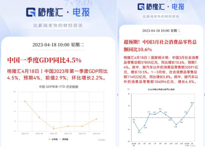 而刚刚公布的一季度宏观经济数据中,GDP同比增速达到了超预期的4.5%,3月份的社会消费品零售总额同比增长10.6%,同样大超预期。