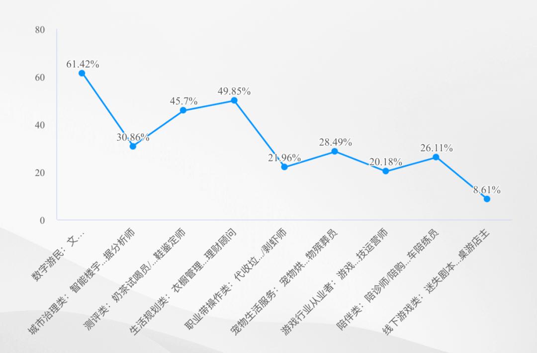 除了传统行业外,我们还就新兴职业向用户做了调研,其中最受欢迎的前三类分别为: