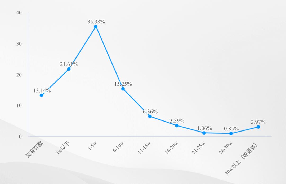 而在存款调研中,我们发现一半以上的人每年存款在5万以下,所以不必焦虑于银行卡上的数字,赚钱是为了生活得更好。