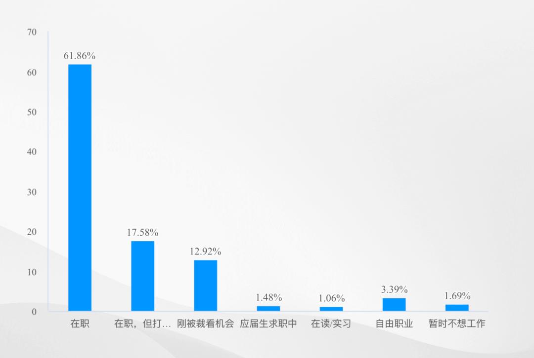 从职业状态上来看,除去在职的人,有20.56%的人处于非稳定工作的状态,相当于每4个人就有1个人暂时没有固定工作。