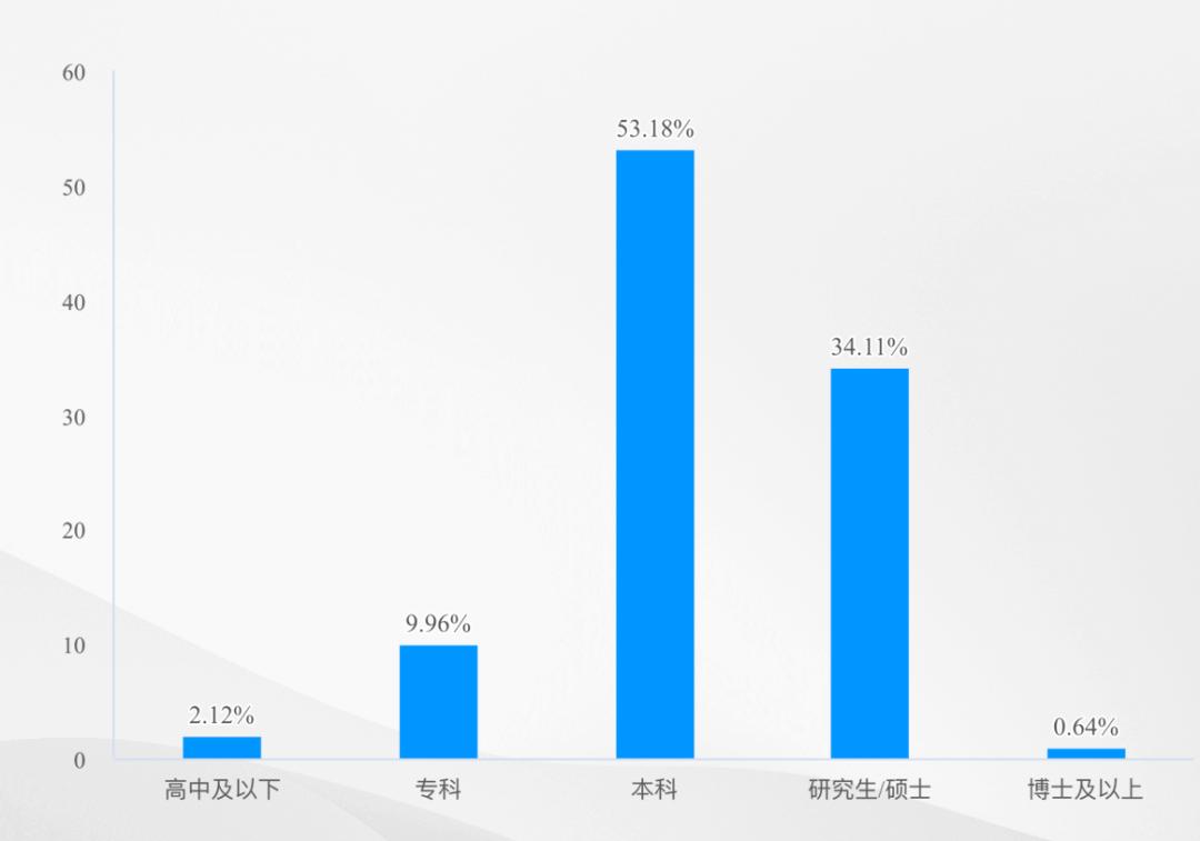 从学历上看,硕士的含金量随着人数的增加在逐年下降,很多公司招聘明确要求学历硕士及以上。
