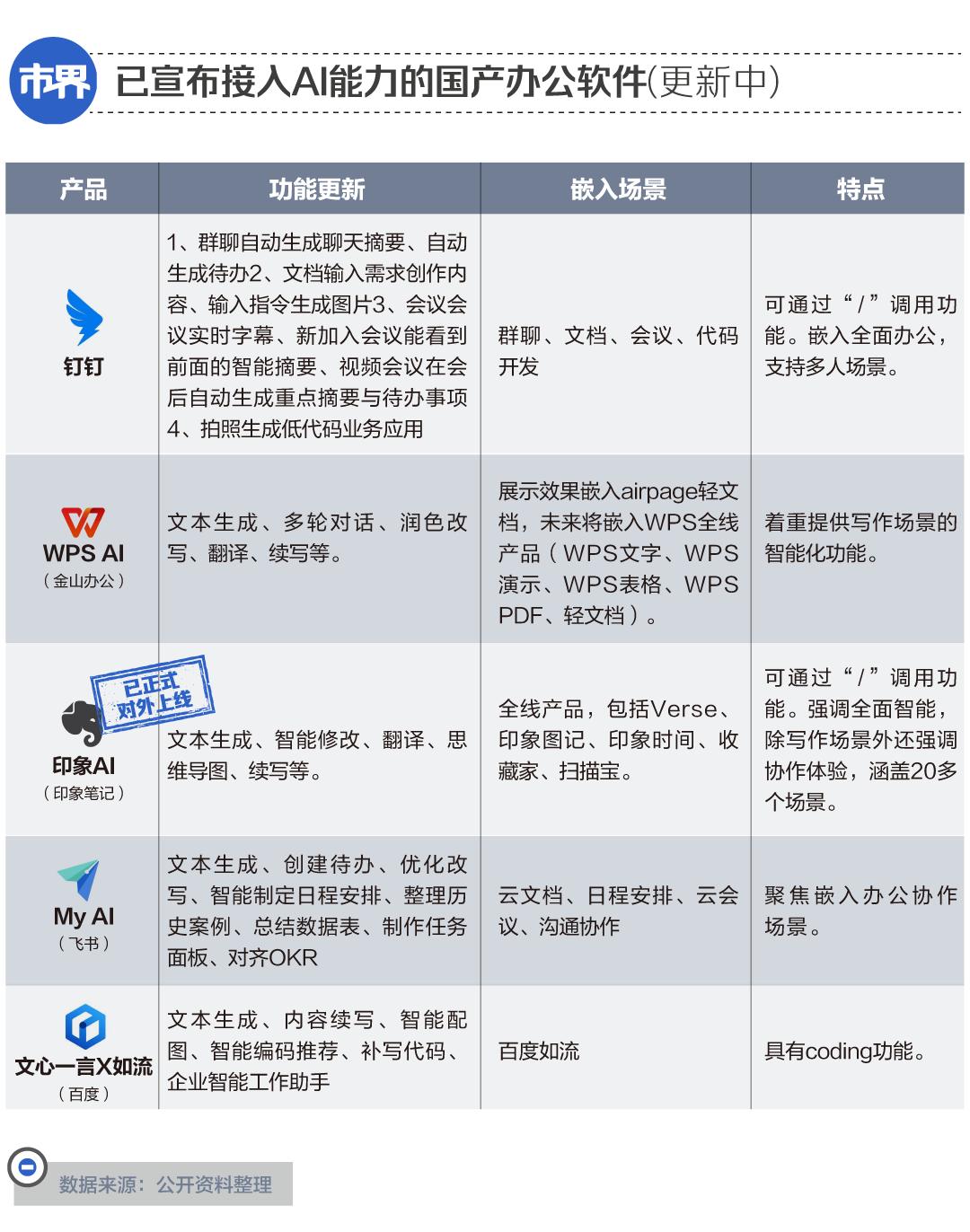 据「市界」了解,目前包括飞书、WPS、石墨文档、腾讯文档在内的多款产品都在观望和测试相关AI产品,“但能够落地的并不多”,一位办公软件赛道的从业者表示。