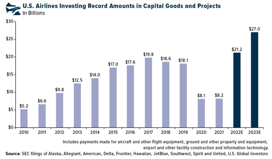 与此同时,美国航司在飞机、设备、机场建设等方面的投资也趋于稳定,2018-2019年甚至小幅回落,航空业在经历了快速扩张的发展阶段后逐步进入平稳期。