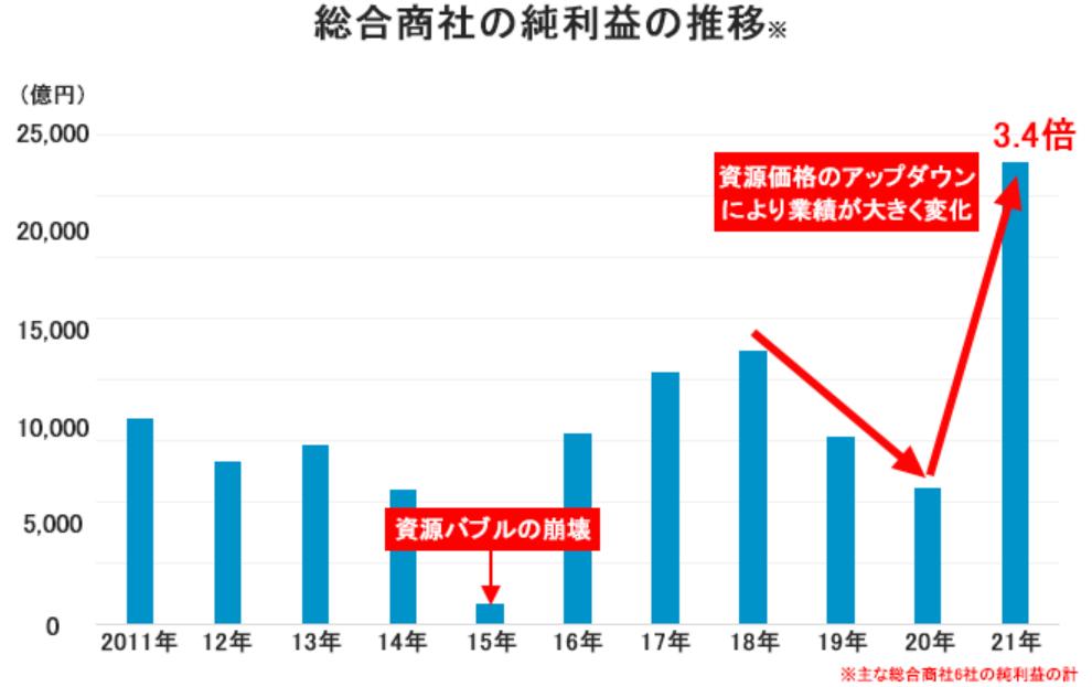 2014-2015年全球商品价格重挫,导致其经营状况恶化。此前五大商社为了追求成长而牺牲了现金流,但周期的回落迫使商社减计大笔资源相关资产,仅住友商事就减计了约3100亿日元的页岩油和铁矿石资产,进而导致大幅亏损。2013财年-2015财年,五大商社的平均净利润降至约17.5亿美元。