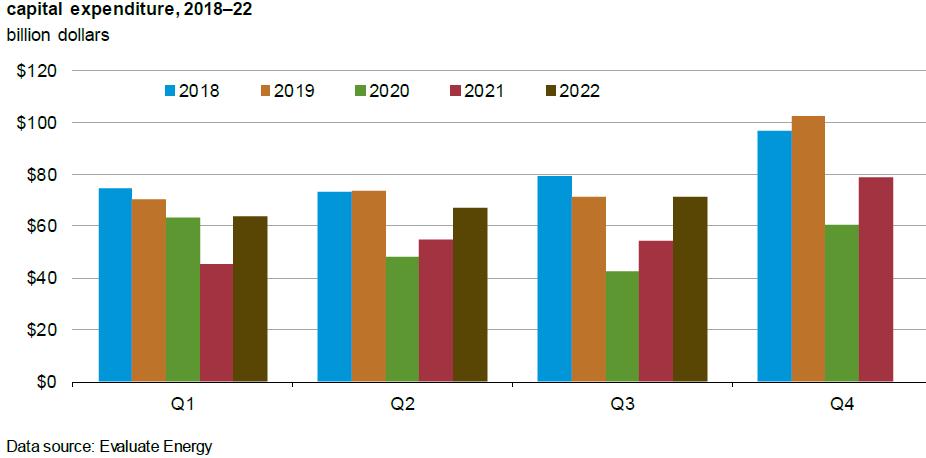 尽管资本支出总额也达到710亿美元,较2021年三季度增长32%,但2022年整体的资本支出仍相对低迷,低于疫情前的水平。