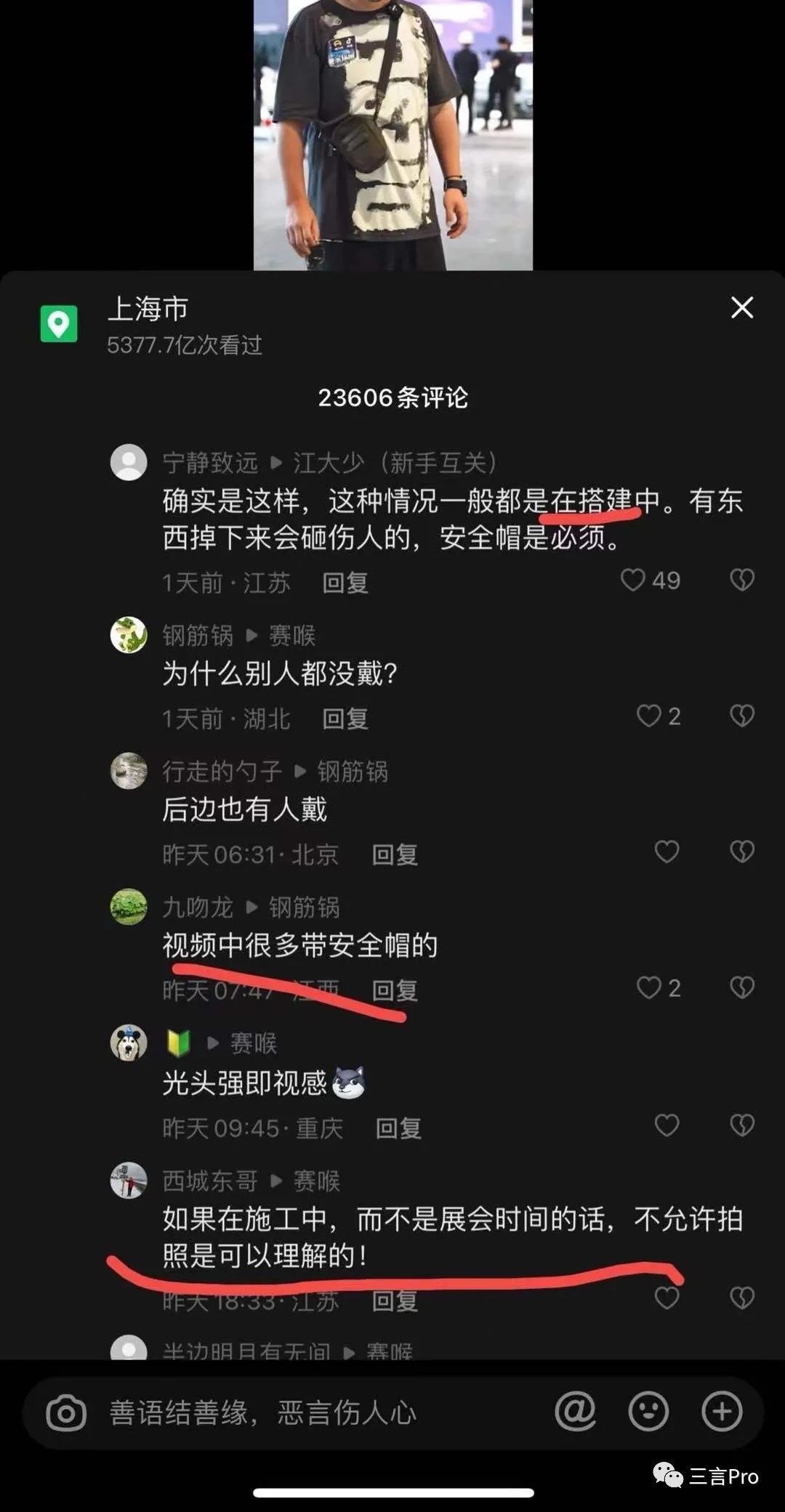 不过也有网友指出,他们两个是17号就到了会场,而18号才是开展日期,从安全帽上看,当时会场很可能还在布置当中,所以不让拍照也可以理解。