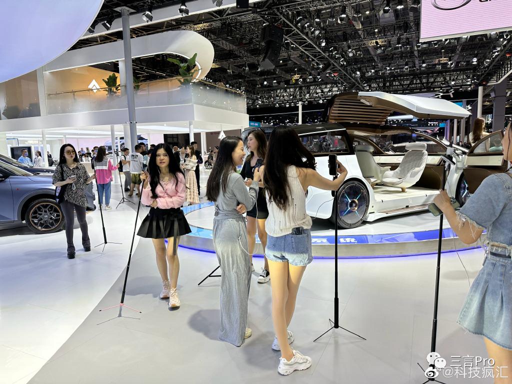 还有大牌明星出现在展会。关注度最高的应该是汤唯空降智己汽车展台,不少粉丝围观。