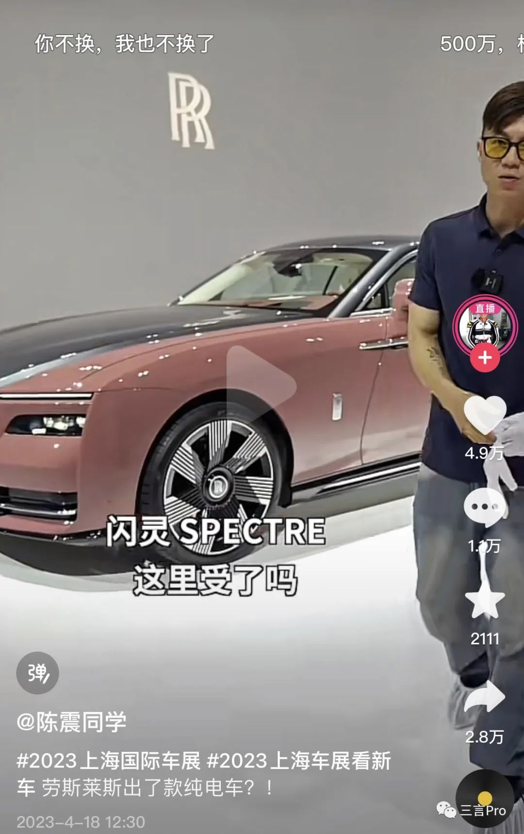而另一个汽车媒体,同时也是劳斯莱斯库里南车主的陈震就很容易进到劳斯莱斯的展台。