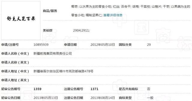 该商标核准使用是在第29 类,椰枣,话梅,干枣,干荔枝,山楂片,以水果为主的零食小吃等商品上。