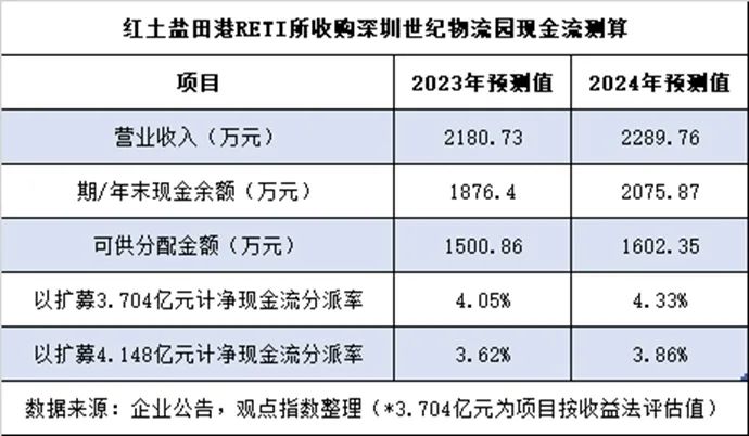 而熟悉招商蛇口的人士接受观点新媒体采访时表示,资产估值是经过国资评估备案的评估确定的,博时蛇口产园REIT应该会按照净现金流分派率不低于4%进行测算。公告显示,该基金按评估值11.72亿元及按募资上限13.478亿元购入深圳光明项目,对应2023年预测净现金流分派率将分别为5.00%、4.35%。