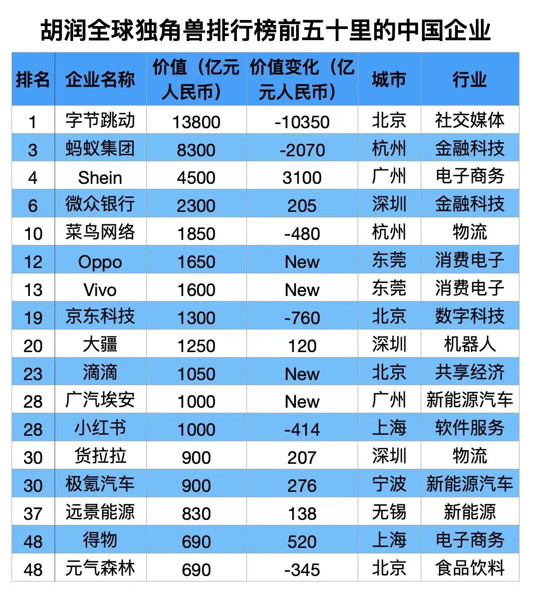 以下是2023全球独角兽前五十名中的中国企业👇