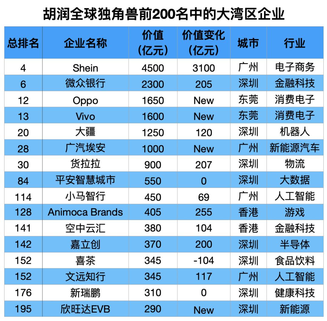 千亿级独角兽,广深莞各占2家