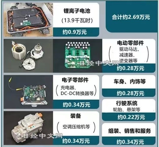 日本名古屋大学对五菱宏光的拆解与成本分析图源:日经中文网