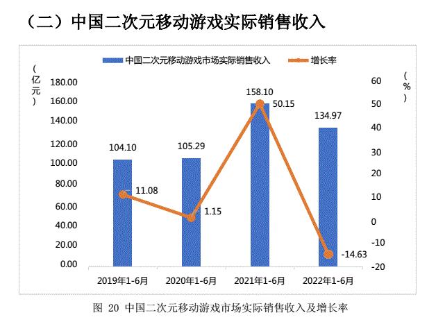 《2022年1-6月年中国游戏产业报告》指出,2022上半年中国二次元移动游戏市场实际销售收入达 134.97 亿元,同比降低14.63%。据自媒体游戏葡萄的统计,2022年上线的国产二游新品中,年流水过亿的只有3款,过千万的只有7款。